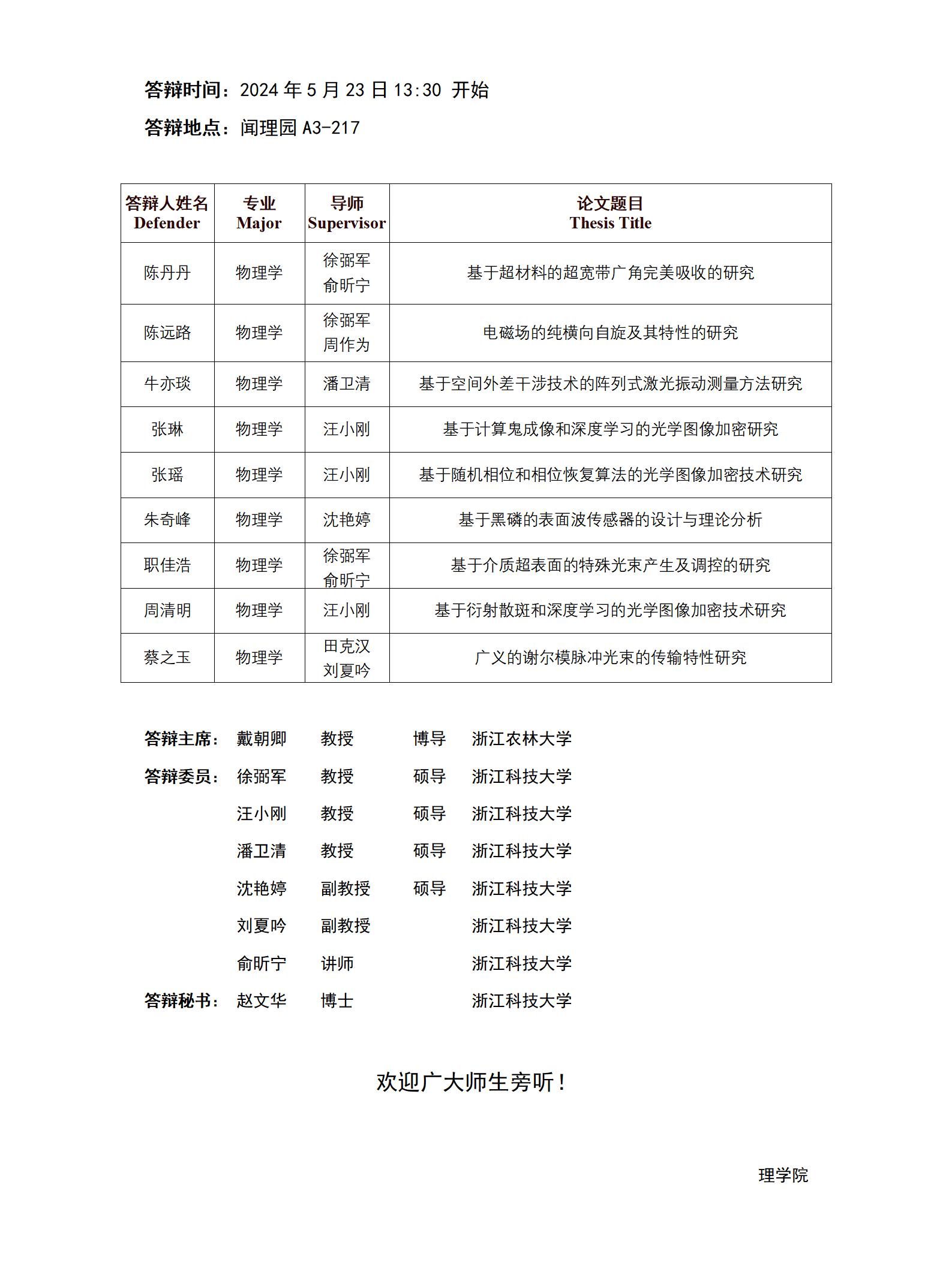 2024年bbin-bbin平台 硕士研究生学位论文答辩公告(物理学1组)