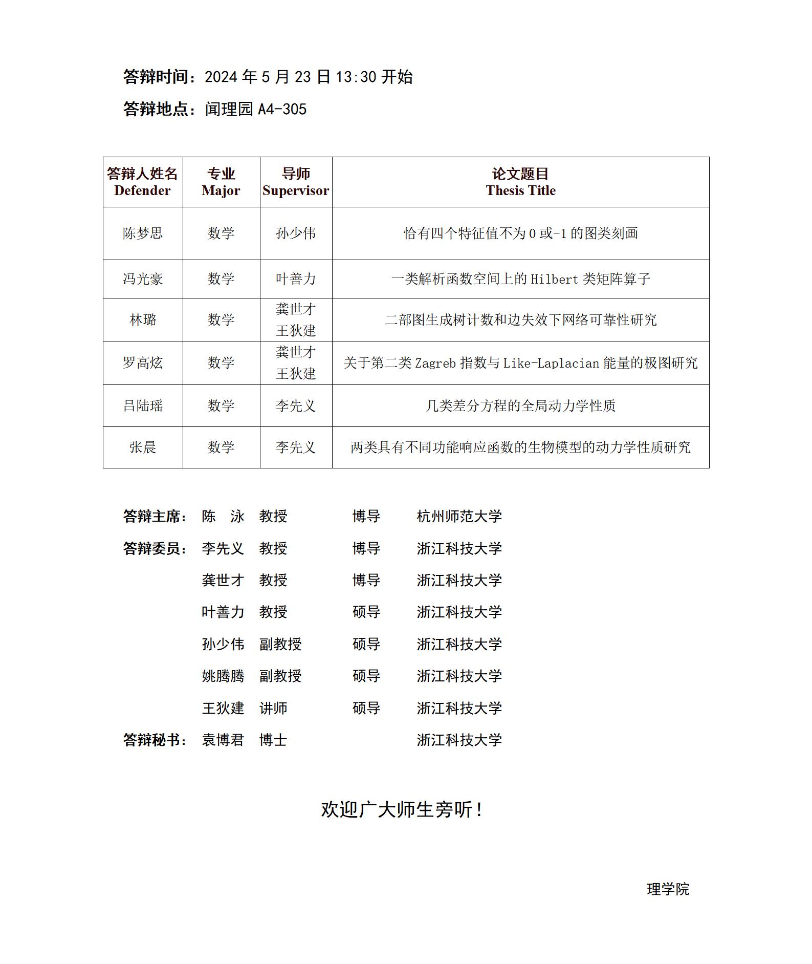 2024年bbin-bbin平台 硕士研究生学位论文答辩公告(数学1组)