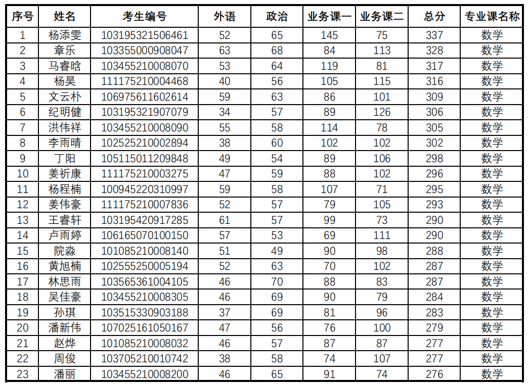 根据《bbin-bbin平台 2025年硕士研究生招生复试录取工作实施细则》中数学调剂的基本要求,及复试比例1:1.5的差额,按照初试总分由高到低的原则,复试面试名单如下: