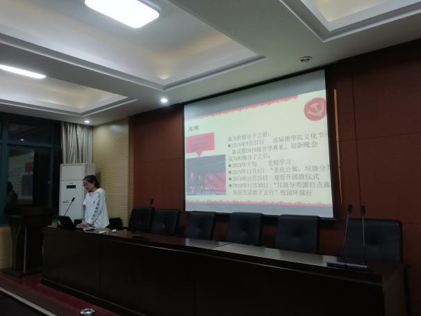 10位入党积极分子对入党一年来思想、学习、生活方面进行了PPT汇报,总结了经过党培养一年后个人的变化并表示今后努力的方向。在座的全体党员认真聆听各位积极分子的汇报,从思想、学习态度、工作态度、组织生活、表率作用等几个方面,党员行使权力现场给予评分。再结合党支部对入党积极分子的考核细则,最终将本次的10位入党积极分子推选为拟发展对象。
