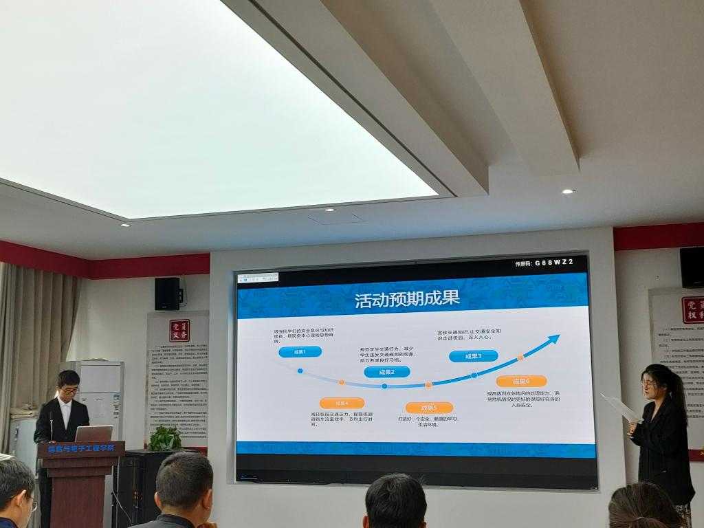 为更好地聚焦校园交通安全现状,阐述校园交通安全管理思路、见解,提高同学们的交通安全意识,11月23日下午,由保卫处主办、信息学院承办的大学生校园交通安全风采现场展示大赛,在C1教学楼四楼409会议顺利开展。