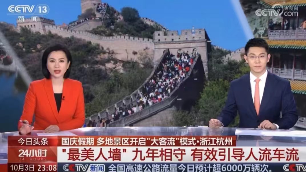 杭州作为旅游热门目的地,在国庆假期迎来汹涌的人潮。每当路口绿灯亮起,“人墙”自动裂开,身后的人潮蜂拥而出,涌向马路的另一边;红灯亮起,“人墙”再次合拢。在这样的循环往复中,“人墙”随着红绿灯开开合合,保证行人和车辆都能遵守交通秩序,大大缓解了路口的拥堵程度。此外,志愿者们还在胜利剧院公交站和龙翔桥公交站等点位帮助游客指引方向、解答各类问题等便民服务,在湖滨步行街宣传反诈和打击乱拉客等野导行为,在湖滨红十字爱馨驿站开展红十字急救等一系列志愿服务。