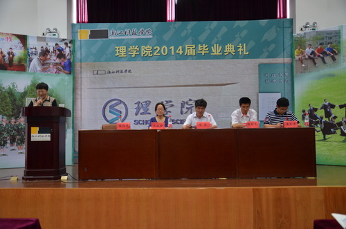 党总支书记苗红亚主持,院长岑岗、院长助理骆钧炎、数学与信息科学系主任朱婉珍、应用物理系主任潘卫清等老师和2014届全体毕业生出席。同时,还有部分毕业生的家长亲临现场,参加毕业典礼。
