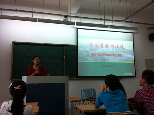 的学长学姐与14级全体新生们展开了热烈的交流。学院党总支书记苗红亚,副书记王杨应邀出席本次交流会。
