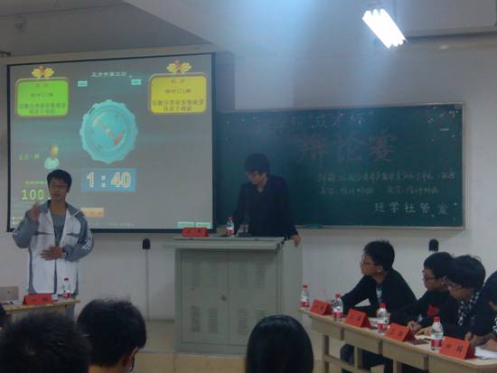 第四届“成才杯”辩论赛在闻理园A2-222教室拉开了序幕。