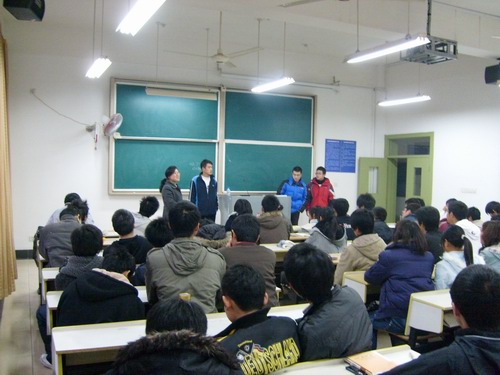 12月23日下午,物理专业09级在A2-114召开了一次别开生面的“大班会”。班会特邀了本专业的三位学长,向大一新生“传经送宝”。会议由应用物理学092班班主任花彩霞主持。