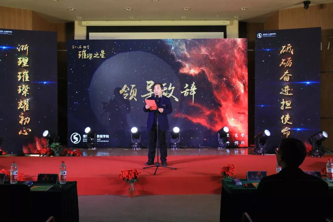 陶院长在致辞中指出每年的“理学·璀璨之星”颁奖典礼既是一场表彰会,也是一场宣讲会,更是一场动员会。目的就在于,通过表彰唱响明理、笃学主旋律,弘扬慎修、博用正能量,以身边榜样的力量,引领广大理学学子为着理想不断追求,不忘初心奋力前进,勇做无愧时代、无悔青春的开拓者、奋进者和奉献者!