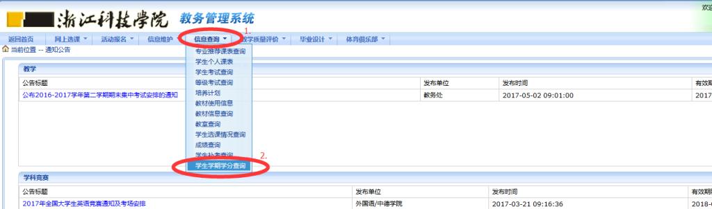 登录教务系统,信息查询---学生学期学分查询,见以下2图。