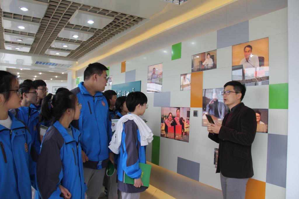 在学院二楼文化长廊,王宝明围绕学院发展历史、专业特点、师资力量、学科竞赛、国际交流和考研就业等方面,向来访师生系统介绍了学院总体情况。