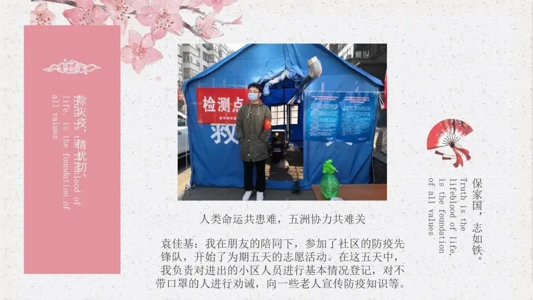 3月13日,大数据182团支部开展了线上特别团日活动:“抗疫情,话担当”,全体成员都积极地参与到了本次活动中。疫情期间,大数据182团支部涌现出了许多的防疫志愿者,他们积极加入各地区志愿者队伍中,有的每天督促来往的市民佩戴口罩,帮助工作人员测量体温,有的灵活运用大数据分析技能帮助社区开展疫情防控工作,结合专业知识为疫情防控工作做贡献。防疫微团课上,志愿者们向同学们分享了志愿感想,并呼吁更多同学在保护自己的前提下为防控疫情贡献一份自己的力量。