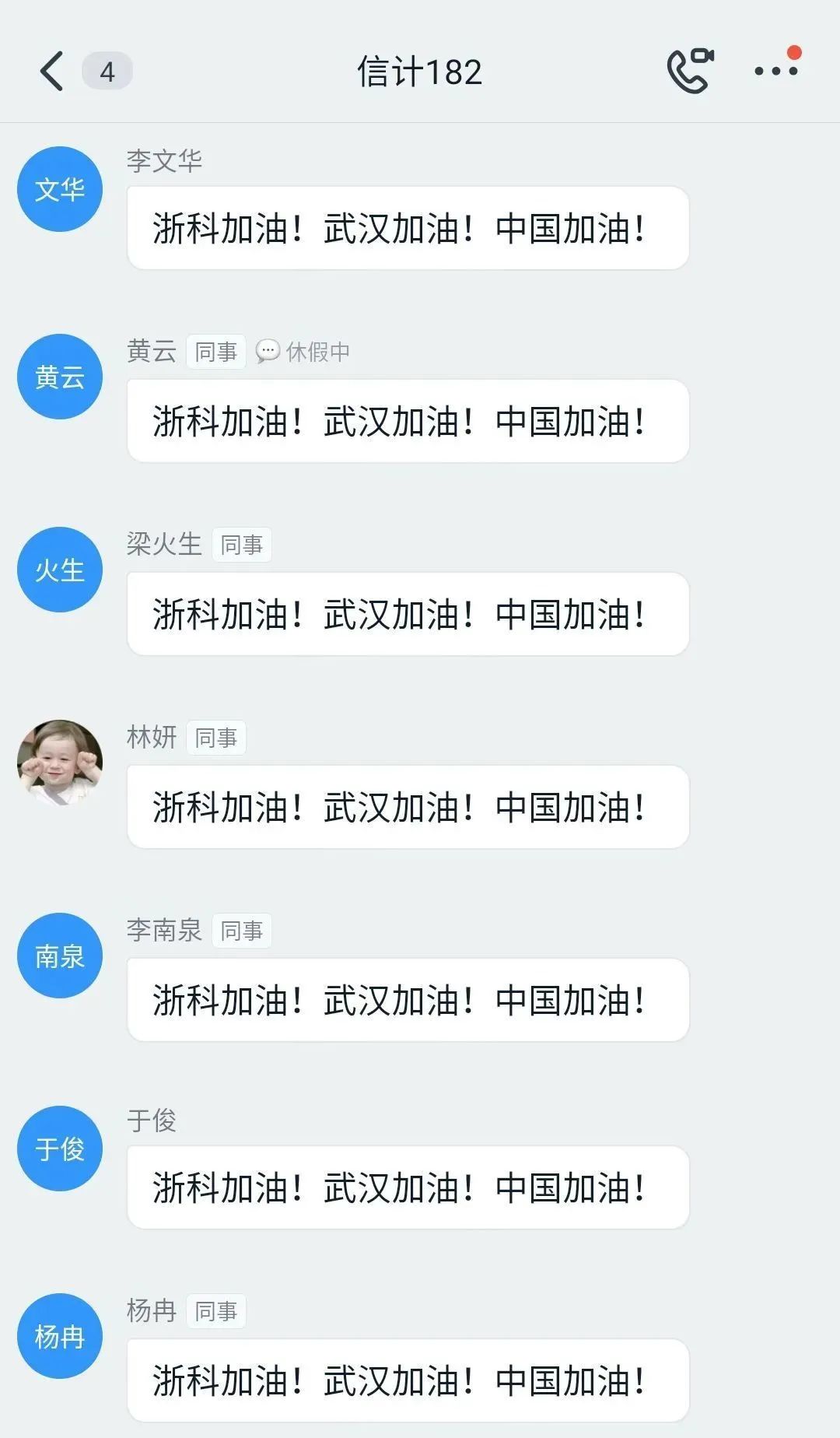 信计182团支书组织大家集体学习了习近平总书记关于新冠肺炎疫情防控工作的重要讲话和重要指示精神,并从多方面讲解了关于“停课不停学”的相关内容,做到坚定信念理性思考、积极响应主动配合、科学规划动静结合、调整状态全心投入、自我规范严守纪律。战“疫”微团课上,亲身参加防疫志愿工作的班级志愿者主动分享他们的战“疫”故事,弘扬战“疫”正能量。最后,班主任张永帅带领大家书写“武汉加油!中国加油!”,为表决心,同学们一起开麦喊出加油口号!声援武汉,你我同在!