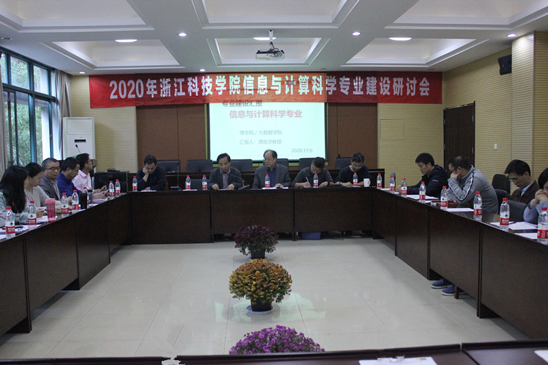 在A4-216会议室举行“浙江科技学院信息与计算科学专业建设研讨会”。应邀参加会议的北京大学、浙江师范大学等省内外7位同行专家共同为信息与计算科学专业建设问诊把脉,鉴定评价,交流经验。校党委委员、院长陶祥兴、院长助理章迪平、数学信息与统计系主任龚世才,以及数学信息与统计系全体教授、教学骨干参加了本次会议,会议由陶祥兴主持。