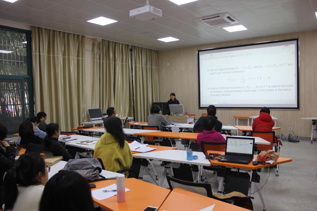 会上,由胡飞瑜、陶元红、王彩虹三位老师分别做了“Spatio-temporal big data analysis of adherence behaviour in chronic disease”、“无偏基与量子相干”、“最大纠缠态的区域可区分性”的学术报告,与会教师提问积极,讨论热烈,在交流中寻求合作空间。