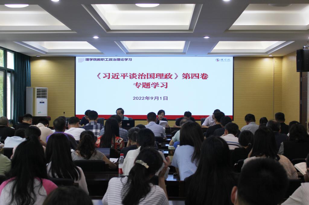9月1日下午,学院教职工政治理论学习专题学习《习近平谈治国理政》第四卷。学院党委书记张掬婴作学习辅导报告。她强调,广大教工要将《习近平谈治国理政》第四卷和前三卷联系贯通起来学习贯彻,读懂用好这部重要著作,把思想认识摆进去、把工作任务摆进去、把岗位职责摆进去,牢记“为党育人、为国育才”的初心和使命,为培养更多的德智体美劳全面发展的社会主义建设者和接班人贡献力量。