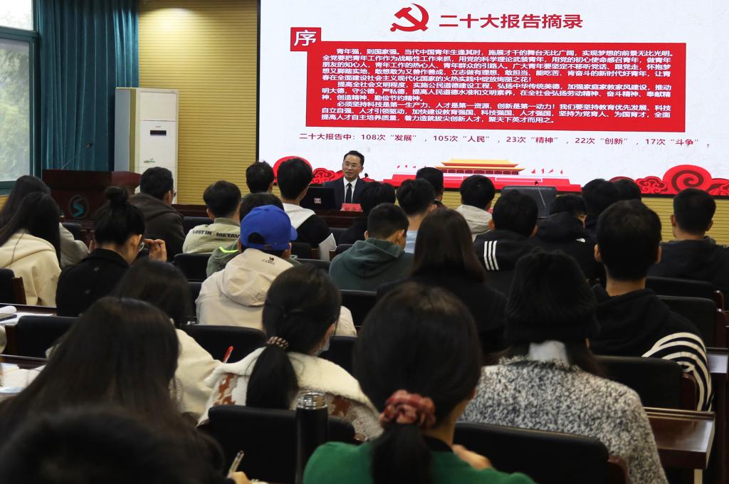 与会学生纷纷表示,这场报告既是一堂生动深刻的思政课,又是一场内涵丰富的精神盛宴,作为新时代的青年,一定会以党的二十大精神为指引,坚定践行社会主义核心价值观,保持好激情、把握好方向、取得好成绩,为实现第二个百年奋斗目标、实现中华民族伟大复兴贡献青春力量!(办公室:刘卫星)