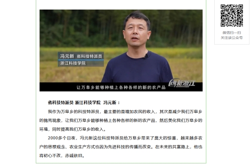 近日,浙江省科学技术厅微信公众号-创新浙江发布《科技筑起山区共富梦 浙江省科技特派员制度实施20周年系列一》的报道,报道了bbin 科技特派员冯元新在万阜乡,为实现产业兴、农村美、农民富奉献着自己的智慧和汗水。(办公室:康 明)