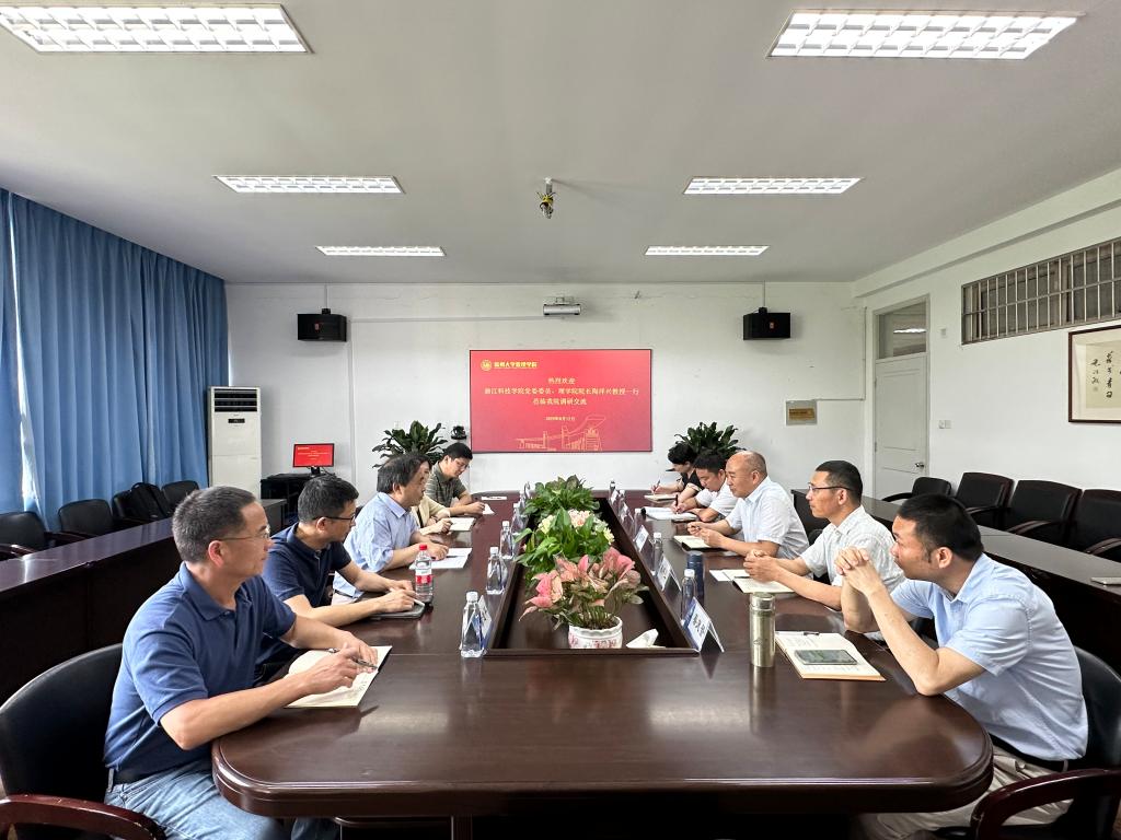 温州大学数理学院负责人对我院学院一行的到来表示热烈欢迎,介绍了学院的发展历史、师资队伍、专业建设、学科建设、实验室建设、党建思政工作、学生工作等各方面情况。双方结合校院两级管理、党建思政、国一流专业建设、研究生招生与培养、考研举措等方面进行了深入探讨,并实地走访了温州大学苏步青谷超豪纪念馆。