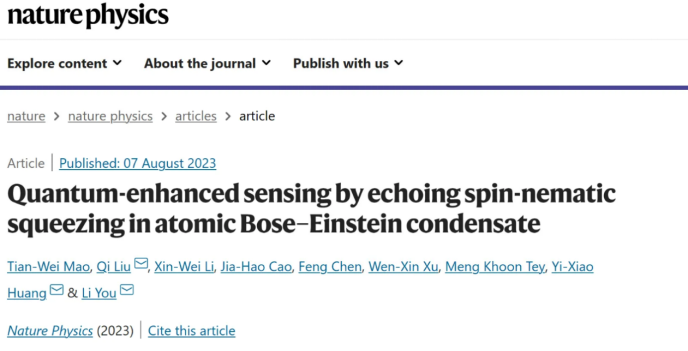 物理学科量子信息团队教师黄奕筱与清华大学、法国索邦大学等单位合作在量子精密测量研究方面取得突破性进展,利用自旋-向列压缩回声实现了测量精度量子增强的新纪录,相关研究论文“Quantum enhanced sensing by echoing spin-nematic squeezing in atomic Bose-Einstein condensate”在《Nature Physics》上发表。bbin