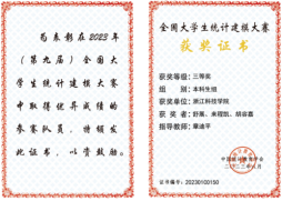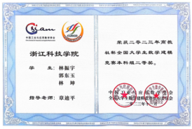 获“高教社杯”全国大学生数学建模竞赛浙江赛区优秀组织奖、“华数杯”全国大学生数学建模竞赛优秀组织奖。