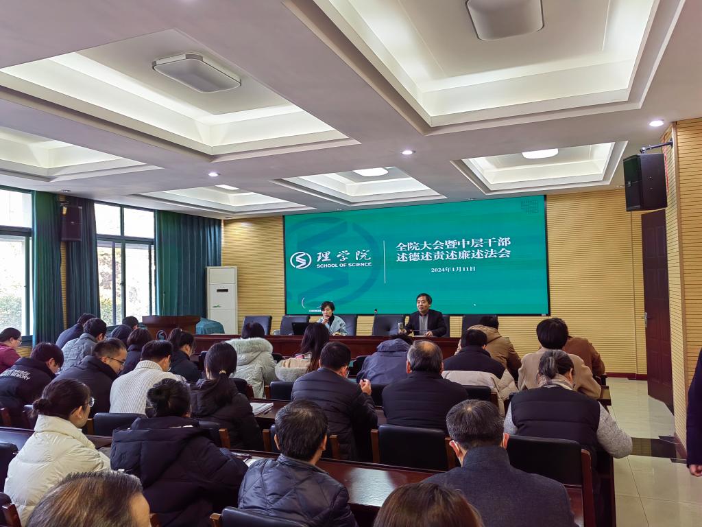 1月11日下午,学院在A4-216会议室召开全院大会暨2023年度领导干部述德述责述廉述法大会。学院全体教职工参加此次会议,大会由党委书记张掬婴主持。