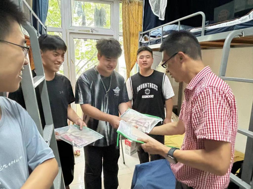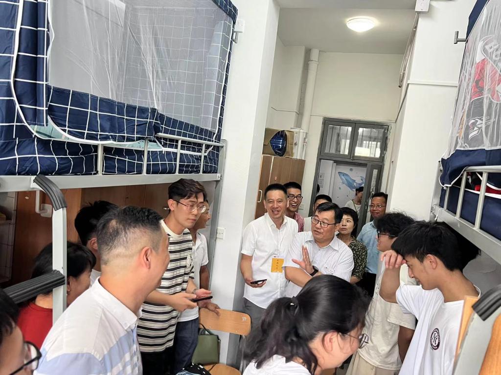 党委书记骆钧炎,学生处副处长王登科,学工办主任蔡瑞康和新生辅导员汪昊等一同走访新生寝室。新生宿舍中,领导与新生及家长亲切交流,了解新生报到情况。走访过程中,侯校长向新生介绍了学校的基本情况,鼓励新生尽快完成从中学生到大学生身份的转变,适应大学生活。骆书记表达了对新生的欢迎,并对新生寄予厚望,希望新生在今后的学习生活中力学笃行,勇于探索,勇于追求,认真完成课业,向榜样学习,将自身发展与国家建设相结合,不断进步,为国家发展贡献力量。新生对领导和老师的关切表示感谢,并表示今后一定会努力学习,提升自身综合实力,在国家需要的地方绽放自身光彩!