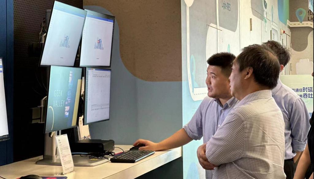 在恒生电子人员的陪同讲解下,陶祥兴参观了由恒生电子主导研发的金融智能助手光子、金融行业语言大模型LightGPT以及的智能投研平台WarrenQ。