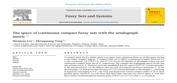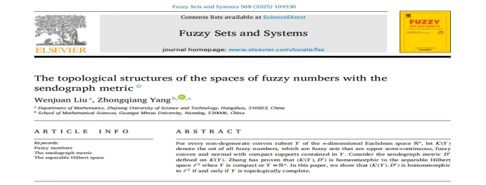 代数与模糊数学团队刘文娟博士与合作者在模糊数学国际权威期刊《Fuzzy Sets and Systems》(中科院一区top期刊)上连续发表3篇学术论文,系统深化了模糊度量空间理论的研究。研究成果以bbin-bbin平台