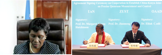 肯尼亚内罗毕大学校长玛格丽特·哈钦森教授在致辞中指出,2025年是“国际量子科学与技术年”,此次肯中双方与非洲全球学术博士组织开展精密量子测量与调控的合作研究恰逢其时、意义重大。她代表内罗毕大学承诺将全力支持此项合作,持续推进师生交流、联合研究和学术研讨等内容,共同应对量子世界提出的重大挑战,促进肯中两国科技和教育交流合作。