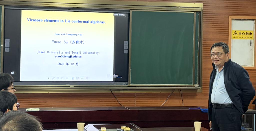 苏育才教授带来了题为“Virasoro elements in Lie conformal algebras”的精彩报告,深入探讨了李共形代数中的Virasoro元素,分享了他在该领域的最新研究成果。