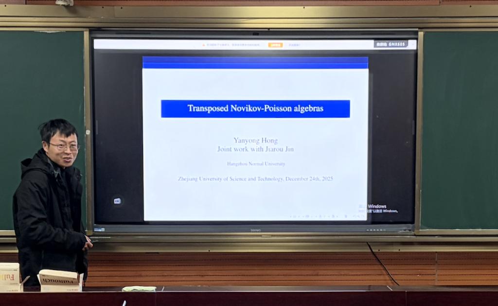 洪燕勇教授带来了题为“Transposed Novikov-Poisson algebras”的报告,深入分析了转置Novikov-Poisson代数的结构和性质,展示了他在该领域的前沿研究。