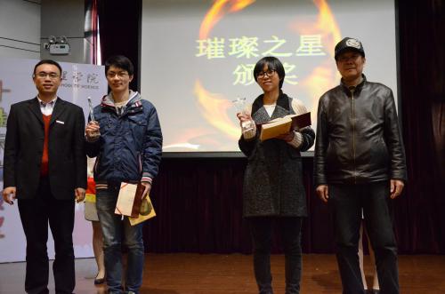 会上,陶祥兴发表了热情洋溢地致辞。他首先对获奖个人和集体表示热烈的祝贺,并强调学院会始终将教书育人放在首要位置,致力于培养厚基础、强应用、高素质,具有国际视野的优秀人才,不断给予理学学子众多政策支持和精神鼓励。 在现场响起的热烈掌声和欢呼声中,主持人上台宣读了2014年 “理学·璀璨之星”十人获奖名单:周婷婷、王凯宇、黄立媛、赵梦倩、张晟畅、陈冠维、张东,bbin