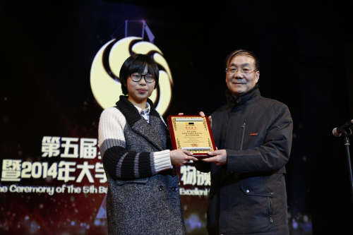 第三届璀璨之星获奖者周婷婷同学为他颁奖。