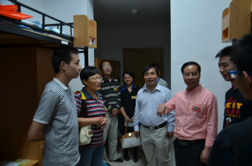 走访中,院领导与新生及其家长话家常,仔细询问新生的家乡情况、兴趣爱好、到校后的感受,并一再叮嘱新生,要注意安全,尽快适应大学生活,学会自我管理,学会自主学习,希望同学们在新校区有全新的开始,在这里实现他们的人生梦想。新生和家长对新校区的环境和设施感到满意,家长希望孩子能在环境优美的校园里安心读书做学问,学有所成。