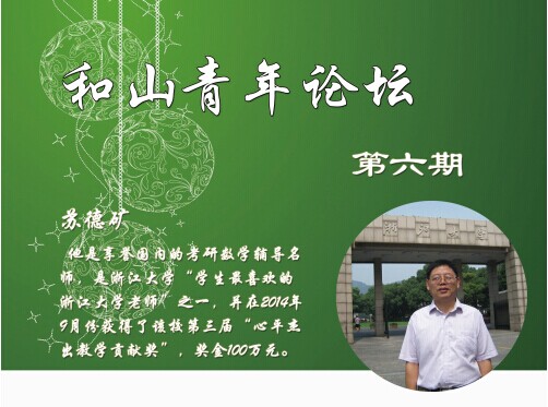 数学系教授,被尊称为“矿爷”的苏德矿老师。这位在浙大倍受欢迎的“矿爷”用他“幽默风趣,讲解透彻”的教学方式吸引了大批学生前来听课,更有“在浙大苏德矿的课一定要去上”的高度评价。渐渐也引起了全国各地学子们的热烈关注,很多非浙大的同学都慕名去一睹“矿爷”的风采,导致课堂座无虚席。为了满足浙科院同学们的求知欲,浙科院bbin