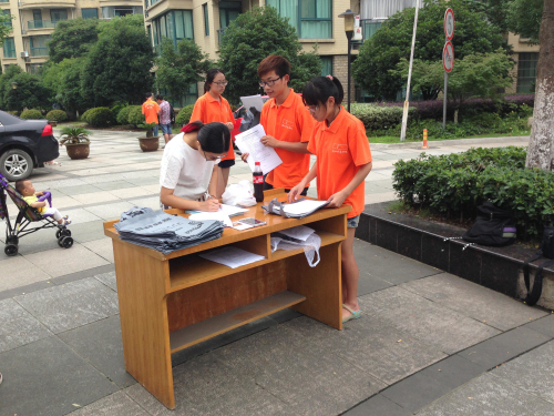 环保卫士们喊着“携手五水共治 助力垃圾分类,共创美丽杭州”的口号开始了这项简单而意义深远的工程。在活动之一的设点宣传过程中,一个又一个的环保袋送到了市民们的手中,同时也将垃圾分类的观念逐渐传递给了更多的人,他们都在活动的横幅上签下了自己的承诺。更有不少外国友人积极响应,对同学们的行为表示赞同和鼓励。市民们的热情不仅影响了更多的人,更重要的是让同学们感到自己的理念是正确的,自己的努力是值得的。