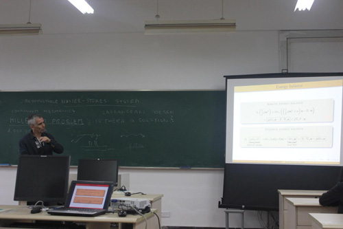 报告会上,Eduard Feireisl教授首先运用热力学第一定律和第二定律介绍了在热力学框架下弱解的热力学一致性的理论。还介绍了他和合作者研究此类问题得到的最新学术成果。最后,还给出了一些有意思的问题供与会师生思考。