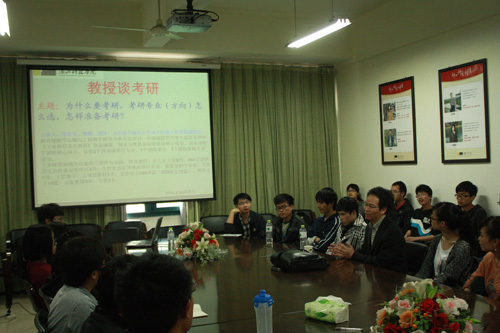 张有光教授首先谈了“为什么要考研、怎样选择考研专业(方向)、如何准备考研”等问题,为有志于考研的同学指点了迷津,拓宽了思路,提供了可借鉴的方法等。讲座结束后,张有光教授还回答了学生们提出的各种问题。