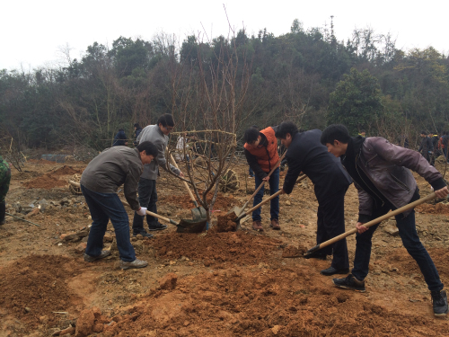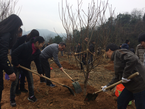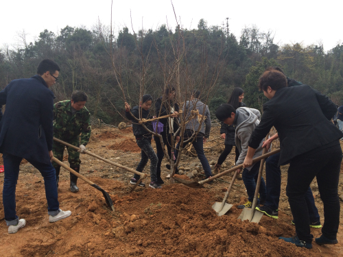 活动现场,气氛非常热烈,干劲十足,大家一起挥锹铲土、扶苗培土、提水浇灌。在大家的共同努力下,不到一个小时,一颗颗小树苗拔地而起,铺满整个山丘。一位毕业班女生动情的说到:“很高兴和四年同窗一起,在校园里亲手种下一棵树,期待我们种下的树能在阳光雨水的沐浴下,和我们的学弟学妹一起好好成长,结出丰硕的果实。”