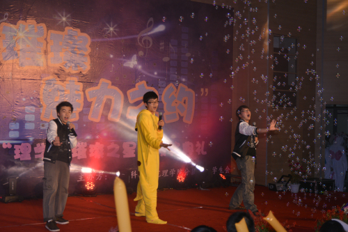 老师带来了第一个节目——歌曲《理学欢迎你》,歌声表达了全院师生的心意,也表达了老师们的祝福。学生党支部表演的舞蹈《青花瓷》传统而大气、信计132班的舞蹈《I’m your man》现代而活泼、信计133班的搞笑话剧《鸿门宴》等精彩节目赢得了全场的欢呼和掌声。辅导员王杨老师与学生吴雨辰合唱的《无与伦比的美丽》更是让在场观众为之疯狂,最后全场师生合唱《相亲相爱》将晚会气氛带入高潮,在观众经久不息的掌声中,晚会完美的落下帷幕。
