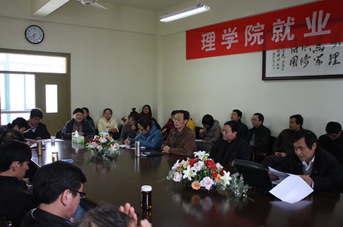 在会议室召开了2013年毕业生就业工作会议。学院党政领导、全体教师参加了会议。会议由学院党总支书记苗红亚主持。