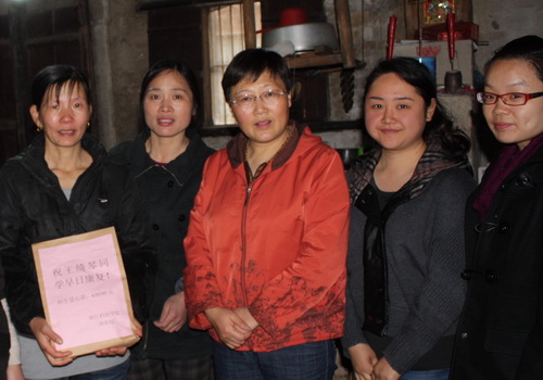 党总支书记苗红亚、辅导员和班主任,来到绍兴县白洋村信计102班王绮琴同学家中,将全校师生爱心募捐的65030元钱送到家属手中。