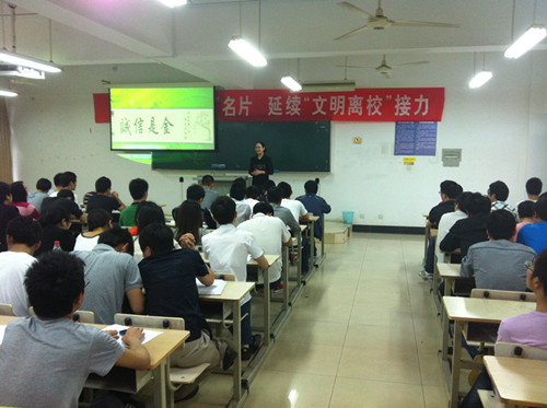 在A2-222为2012届全体毕业生举办了一场诚信教育专题讲座。浙江省高校优秀青年教师、校社科部直属党支部书记钭丽珍应邀主讲。学院党总支书记苗红亚、院长岑岗、就业辅导员和2012届毕业生参加了本次活动。