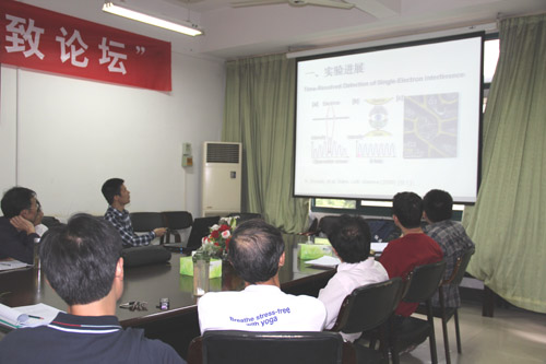 5月30日,由bbin 物理系主办的“格致论坛”举行第14讲。bbin 院长岑岗教授、科技处处长阮世平教授及物理系老师参加了报告会。报告会由物理系主任王长荣教授主持。 会上,骆钧炎博士、李旦博士、王建中副教授分别就“固态量子测量中的非马尔科夫效应”、“P波产粲夸克对撞机上的伴随产生”、“几个物理教学问题的研究和商讨”作了专题报告,介绍了自己在该领域的研究成果,并与其他老师就相关专题进行了认真而热烈的讨论。