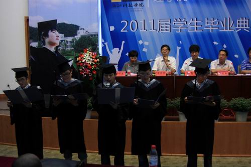 典礼开始前,在场的所有嘉宾和毕业生一起观看了各班制作的“2011届毕业生纪念册”PPT,回顾了过往四年间大学生活的点点滴滴。