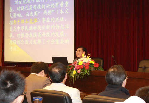 师生作了一场题为“发扬两弹一星精神,促进我国高科技事业发展”的学术报告。报告会在行政楼328报告厅举行,副校长郑友取教授主持。