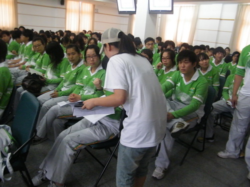7月6日,我们走访上海巴士实业股份有限公司。接待我们的张小姐告诉我们,由于上海巴士实业股份有限公司和上海大学巴士汽车学院的合作关系,世博园区内驾驶观光车的志愿者都由巴士学院提供,并且这批志愿者从去年就开始接受巴士公司的培训了。随后,为深入了解志愿者的生活和工作,我们又参观了上海大学巴士汽车学院,走访了吴晓雯和陈婉如志愿者的寝室,交谈后我们得知世博会志愿者的工作深受学校重视,精神上校方给予很多鼓励,物质上更给予帮助和便利。在巴士学院,我们还遇上了巴士学院志愿者的誓师大会。大学生志愿者们都认为这项志愿工作是光荣且有意义的,更是他们对社会的回报。他们认为参加志愿者工作不仅能够深刻体会世博精神,而且对综合问题处理能力的提高,团队合作能力的提高,社会经验的增加,朋友圈范围的扩大都有很大帮助。