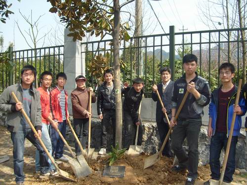 党政领导与同学们共同种下了广玉兰、香樟、桂花等树木。