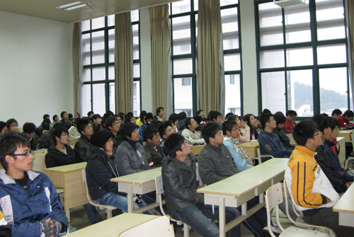 当日下午,闻理楼A3-217教室坐满了前来听讲的学生。张教授针对目前大学生中普遍存在的一些问题,围绕“大学怎么读”谈了三个问题:一是如何从个人未来职业发展所需要的知识、能力、素质要求来确定不同的学习方式,以及如何从本科、研究生、博士生的不同定位确定大学学习的方式;二是从数学在自然科学研究中的地位和数学在信息领域中的重要性谈数学的价值;三是针对信息与计算科学专业的学生谈关于专业方向的问题,以及如何选择研究生方向的问题。讲座中,张教授结合自身的经历,以生动的言语、渊博的知识、深邃的数学思想与同学们谈了数学学科的重要性,以及大学数学学习的方法和数学思维训练的方式。最后,他鼓励大家确立远大目标、树立信心、有效学习,实现自己的梦想与人生价值。