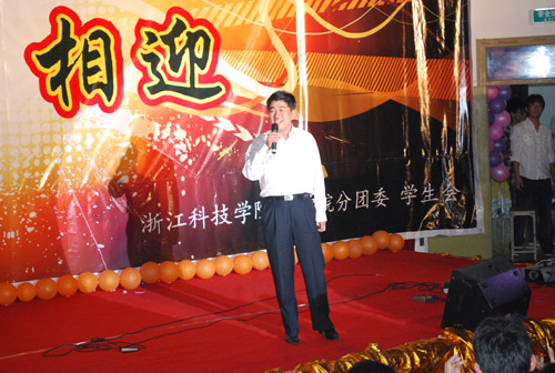 副院长岑岗为本次晚会致词,他代表学院全体教工对2009级新同学的到来表示热烈的欢迎,并希望同学们能尽快融入科技学院,融入bbin