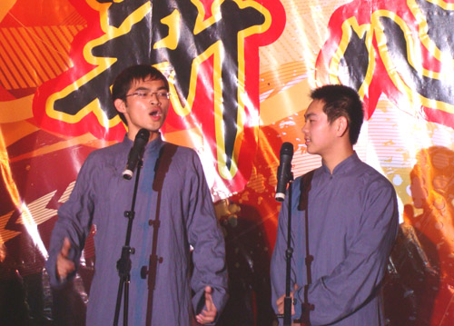 晚会在大一女生集体舞蹈“Girl’s show time”中开场,整台节目精彩纷呈,高潮迭起。欢快的旋律,优美的歌声,风趣的小品,让人沉醉其中。信息与计算科学系申国伦老师与信计082班邰振江同学表演的相声让我们领略到了bbin